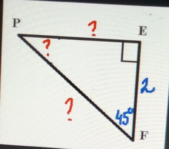∠Р = 45°; РЕ = 2; PF = 2√2 ≈ 2,83