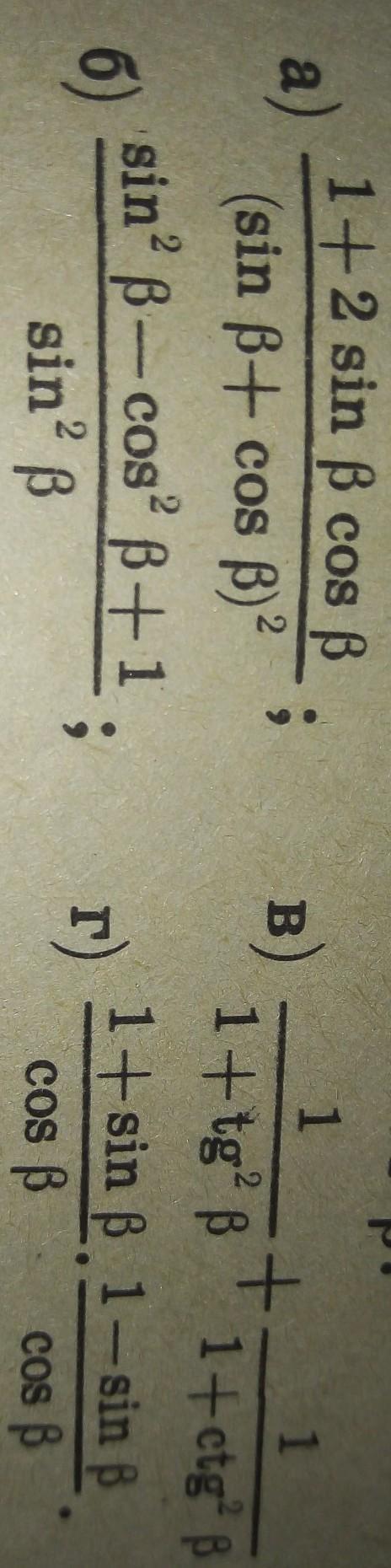 Г) 1-sin^2b/cos^2b=cos^2b/cos^2b=1