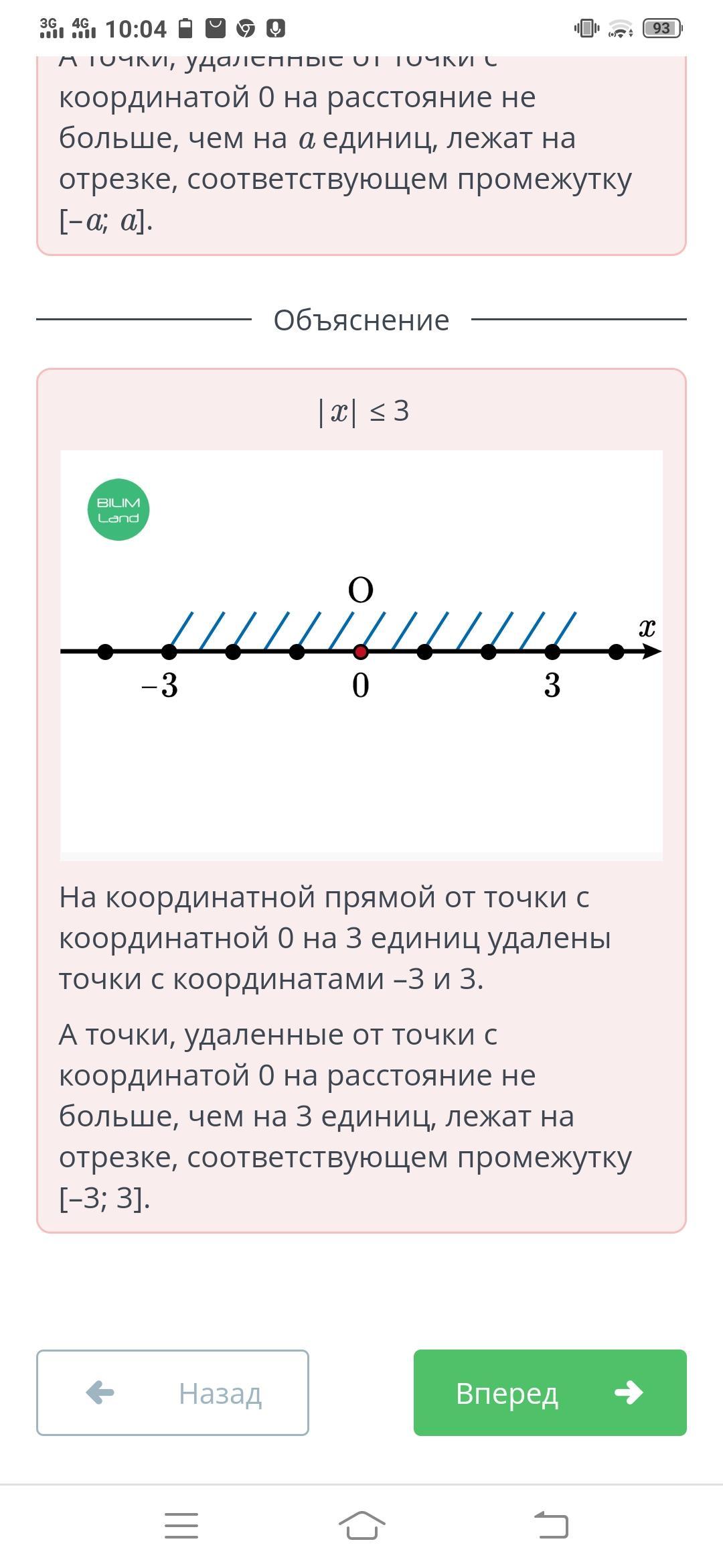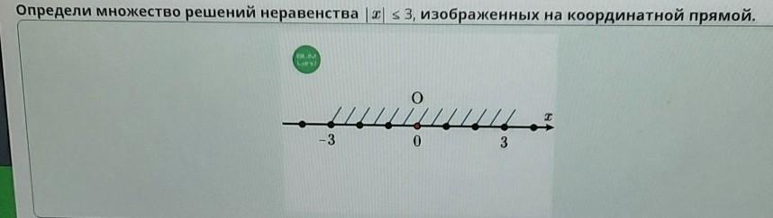 Определи множество решений неравенства |x| ≤ 3, изображенных на координатной прямой.