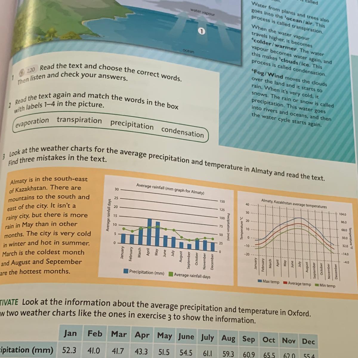 3 Look at the weather charts for the average precipitation and temperature in Almaty and read the text.
