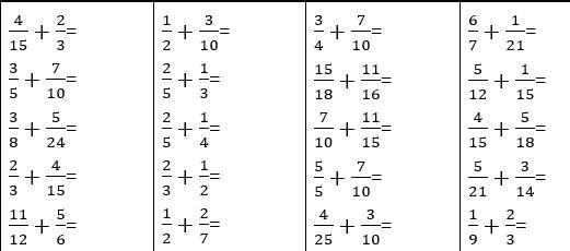 1) 6/15 2) 10/10 3) 8/24 4) 6/15 5) 16/12