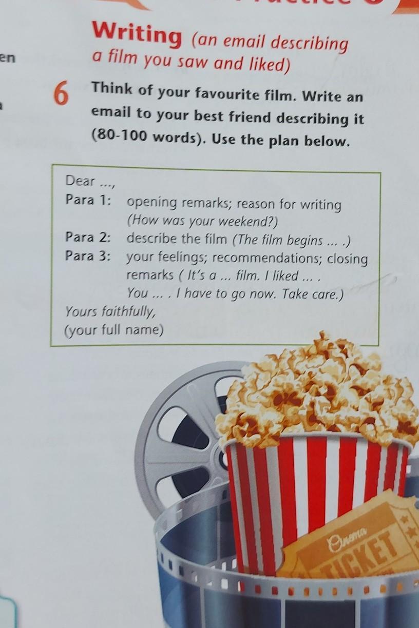 Think of your favourite film. Write an email to your best friend describing it (80-100 words). Use the plan below.