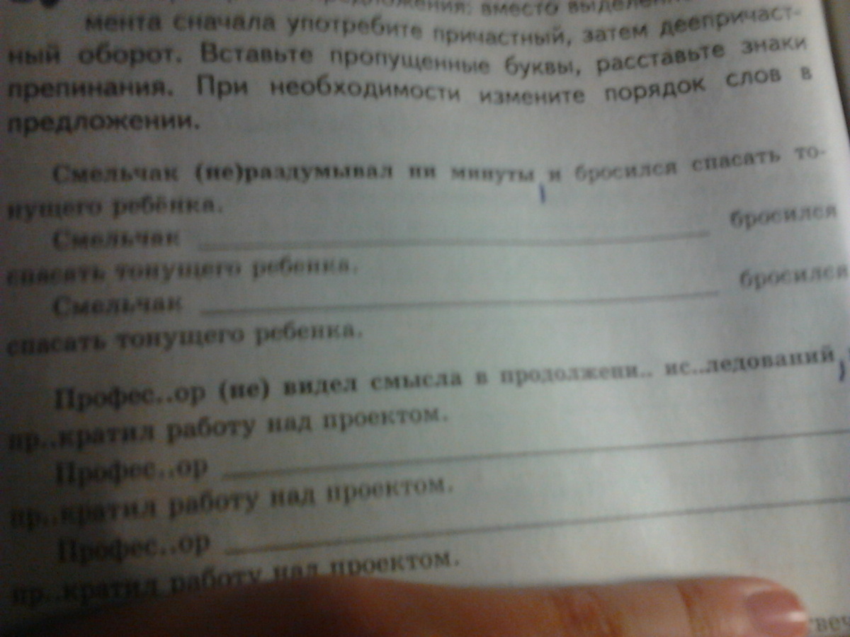 Смельчак,бросившийся спасать тонущего ребенка, не раздумывал ни минуты.-с причастным