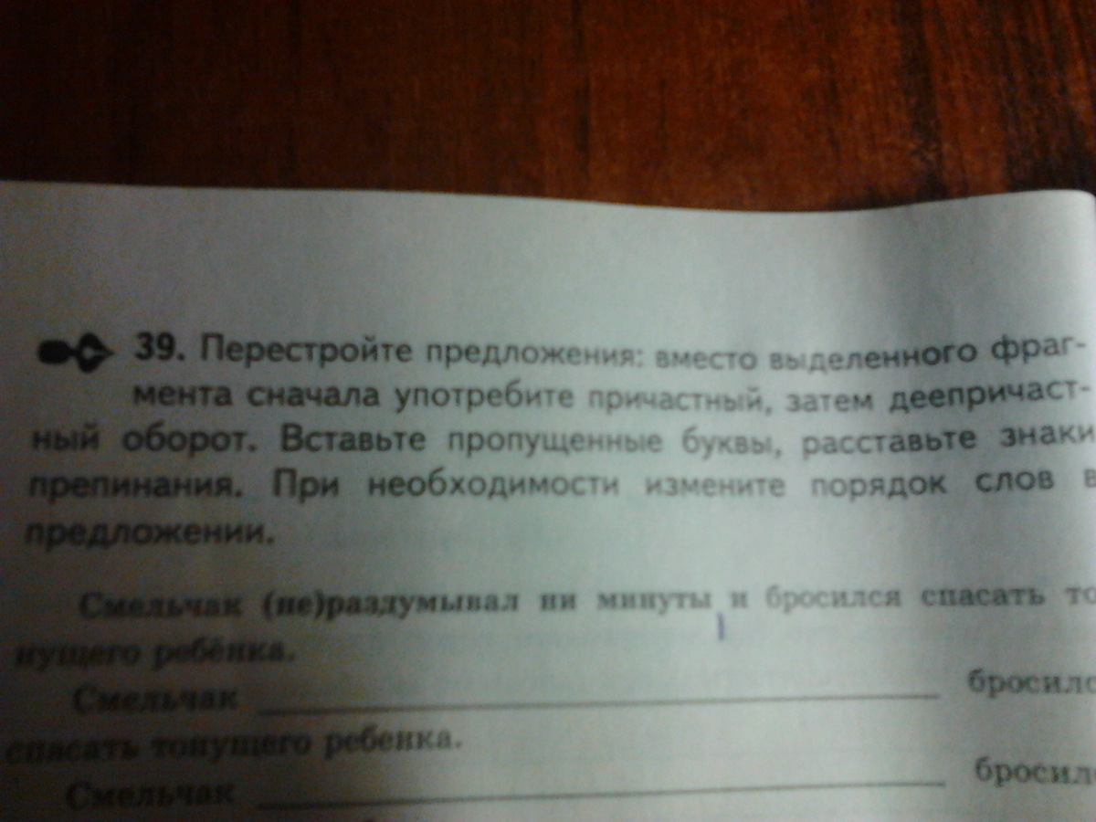 Смельчак,не раздумывая ни минуты,бросился спасать тонущего ребёнка.-с деепричастным оборотом