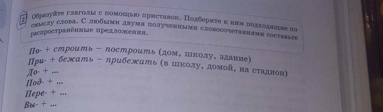 Образуйте глаголы с помощью приставок. Подберите к ним подходящие по