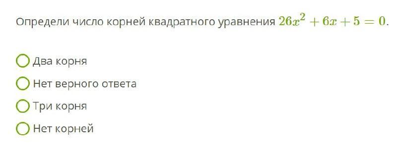 Определи число корней квадратного уравнения 26x2+6x+5=0 .