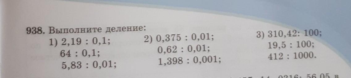Чтобы разделить десятичную дробь на 0,1; 0,01; 0,001 и т. д., надо перенести в ней запятую на столько цифр вправо, сколько стоит нулей перед единицей в делителе: