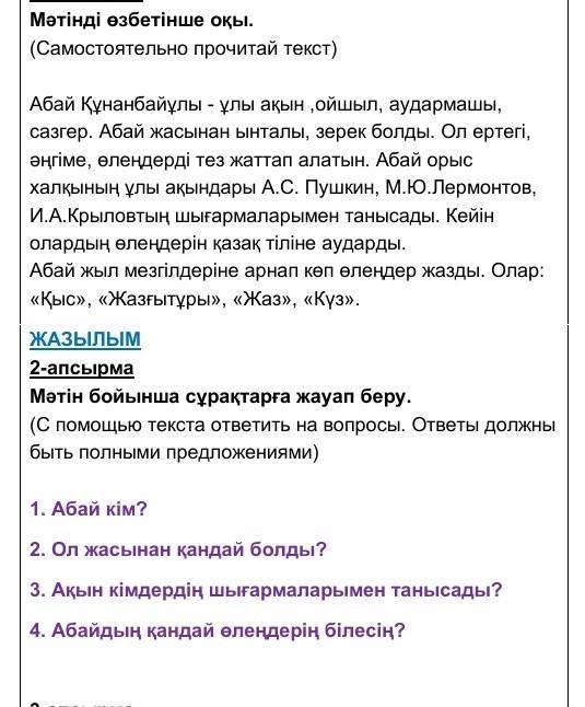 3)Ақын А.С. Пушкин,М.Ю. Лермонтов,И.А. Крыловтың шығармаларымен танысады