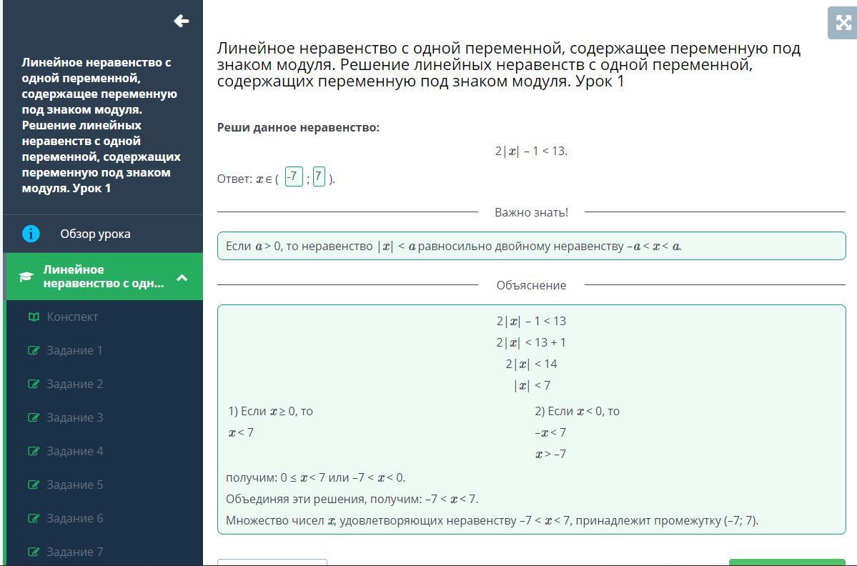 Линейное неравенство с одной переменной, содержащее переменную под знаком модуля. Решение линейных неравенств с одной переменной, содержащих переменную под знаком модуля. Урок 1