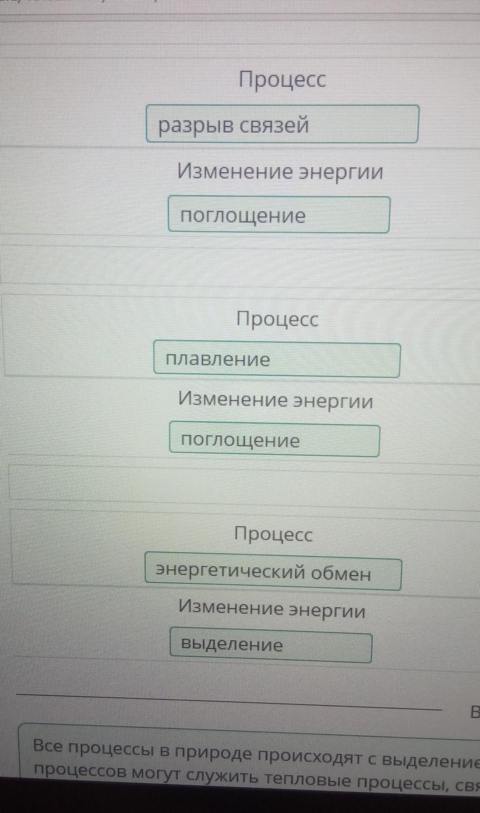 Соотнеси примеры поглощения и выделения энергии, характерные для предметных областей