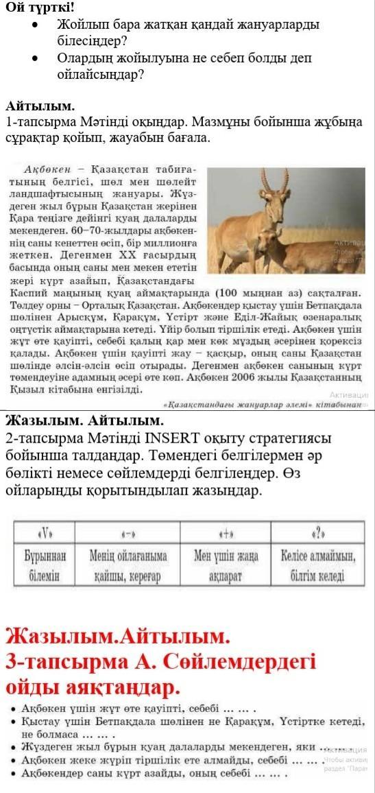2тап. Бұрыннан білем:ақбөкен дала жануары
