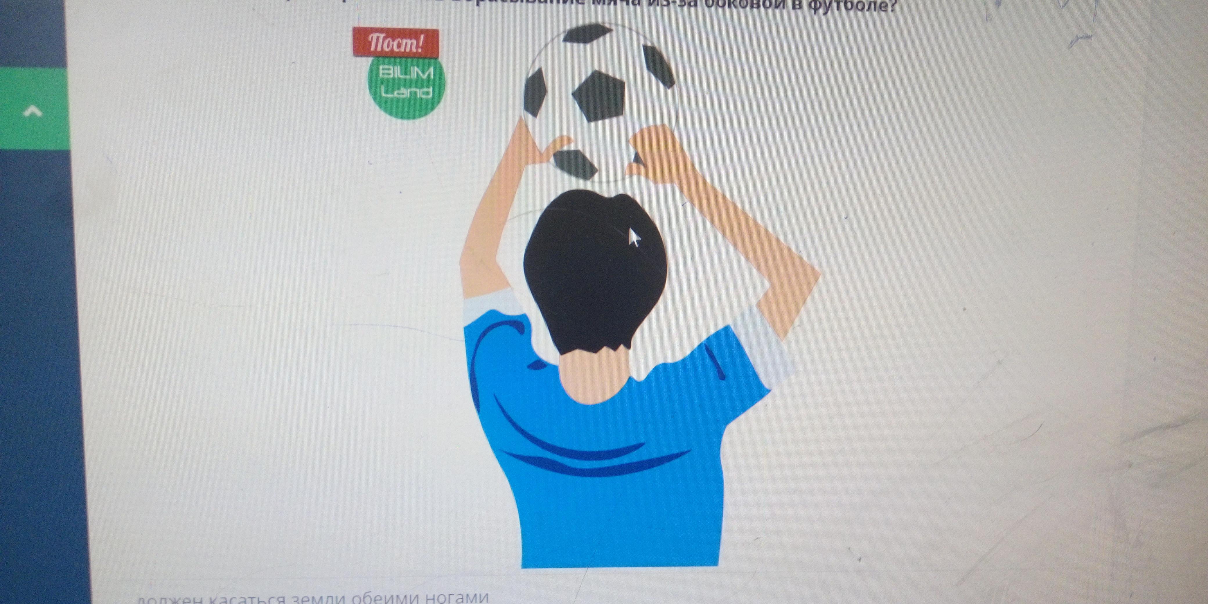 Ответ будет:должен касатся земли обеими ногами, потому что подача боковой в футболе не выполняется одной рукой, и тот кто подаёт не должен стоят на одной ноге, и подача в прыжке это нарушение