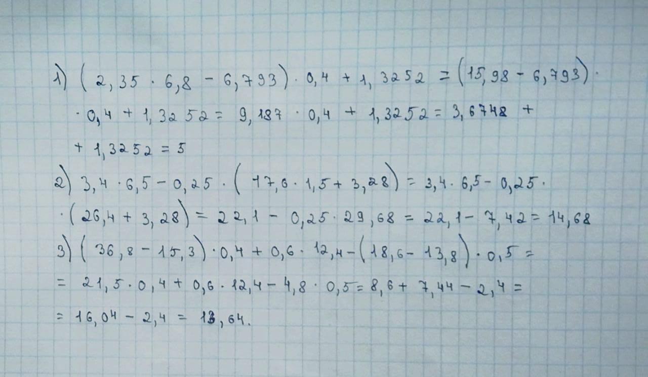3,4 * 6,5 - 0,25 * (17,6 * 1,5 + 3,28) = 14,68