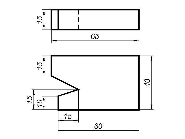 Первые два чертежа выполнены верно, на первом чертеже я указала толщину детали обозначением S15, а на втором начертила вид спереди, на котором и указала толщину (высоту).