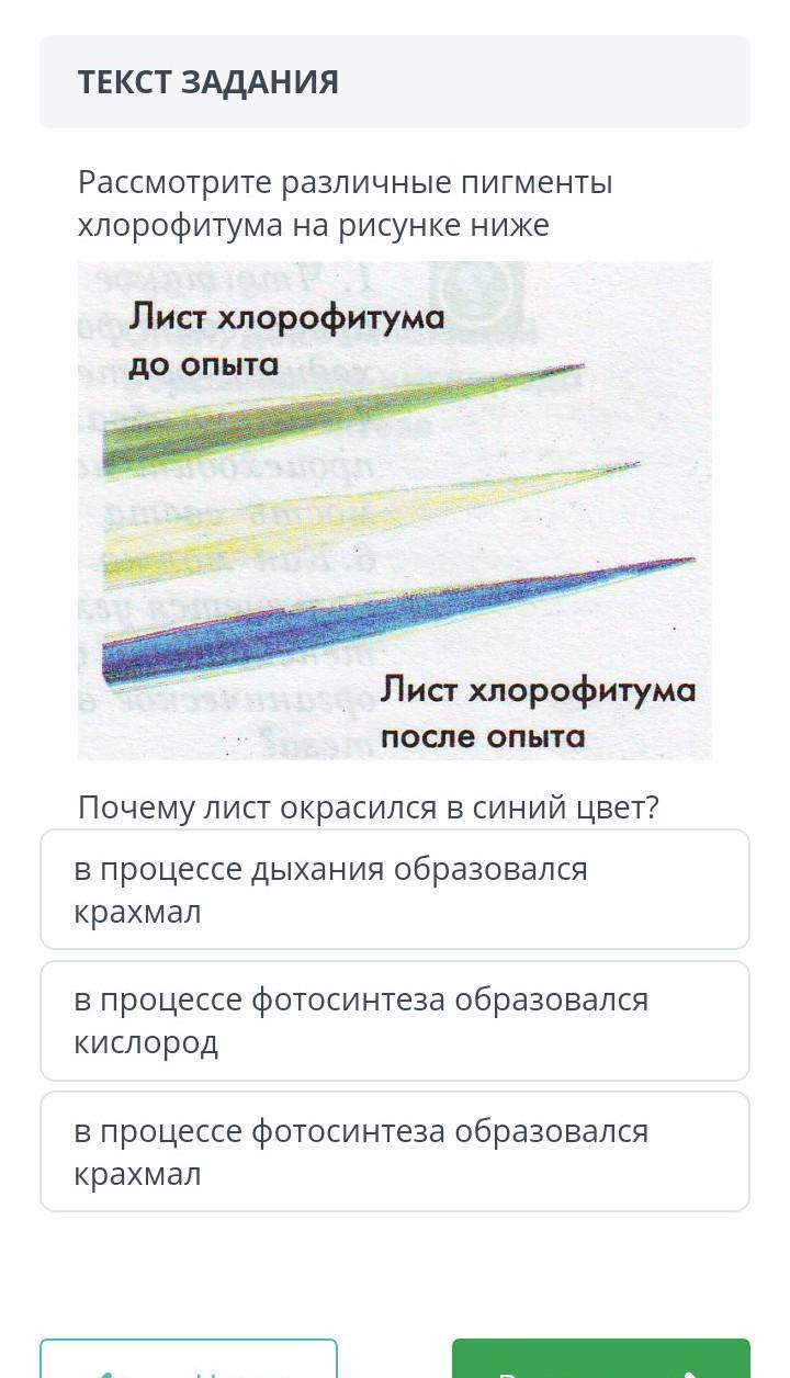 почему лист окрасился в синий цвет в процессе дыхания образовался крахмал