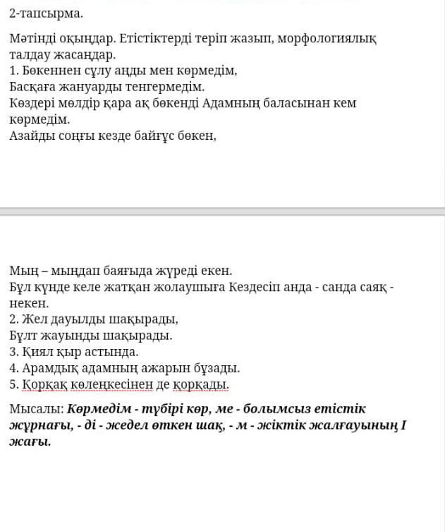 етістіктер:Көрмедім,тенгермендім,азайды,жүреді,келе жатқан, и т.д