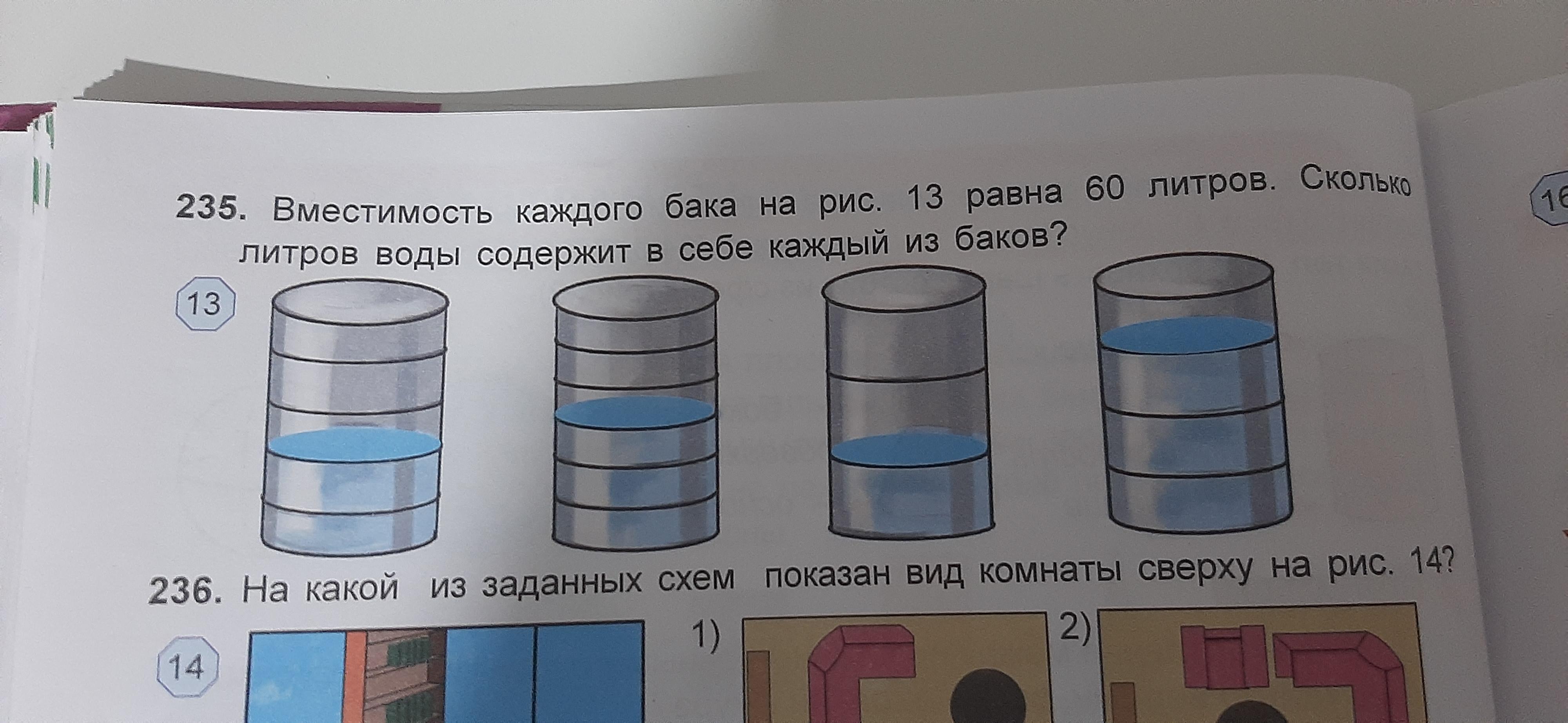 Вместимость каждого бака на рисунке 13 равна 60 л Сколько литров воды содержит в себе каждый из блоков