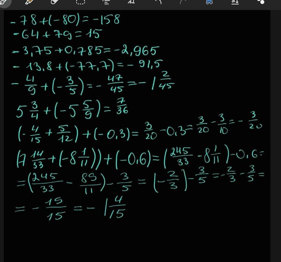 7) = (-16/60 + 25/60) + (-0,3) = 9/60 - 3/10 = 9/60 - 18/60 = -9/60 = -3/20