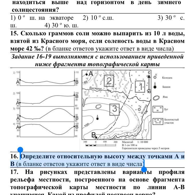 Определите относительную высоту между точками А и В (в бланке ответов укажите ответ в виде числа)