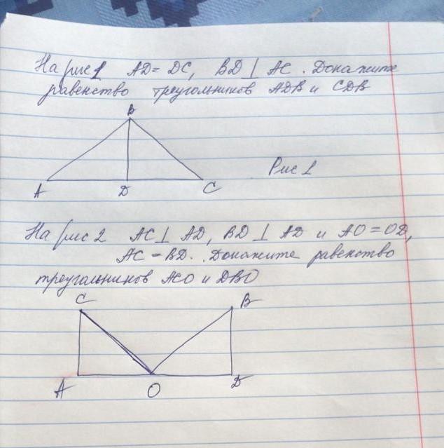 По первому признаку равенства треугольников треугольники АОС и ОВД равны между собой