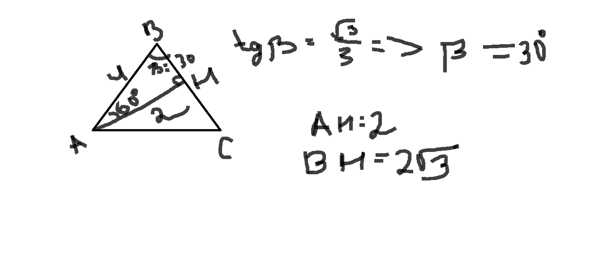 В равнобедренном треугольнике АВС (с основанием АС) проведена высота АК. Найдите её длину, если АВ = 4, tgB =√3/3