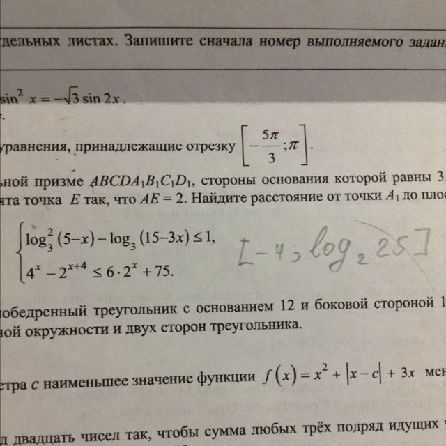 x² + px + q ≤ 0. Здесь х = 2^x р = -22 q = -75.