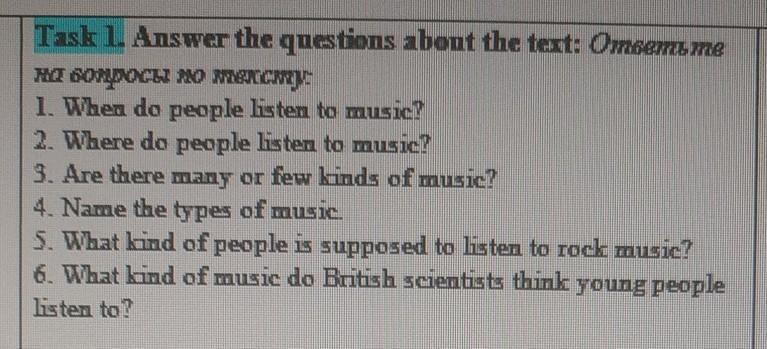 People listen to the music everywhere: at home, in the bus, in the street, in the shops, on television and over radio. They listen to music, they dance to music, they learn to play musical instruments.