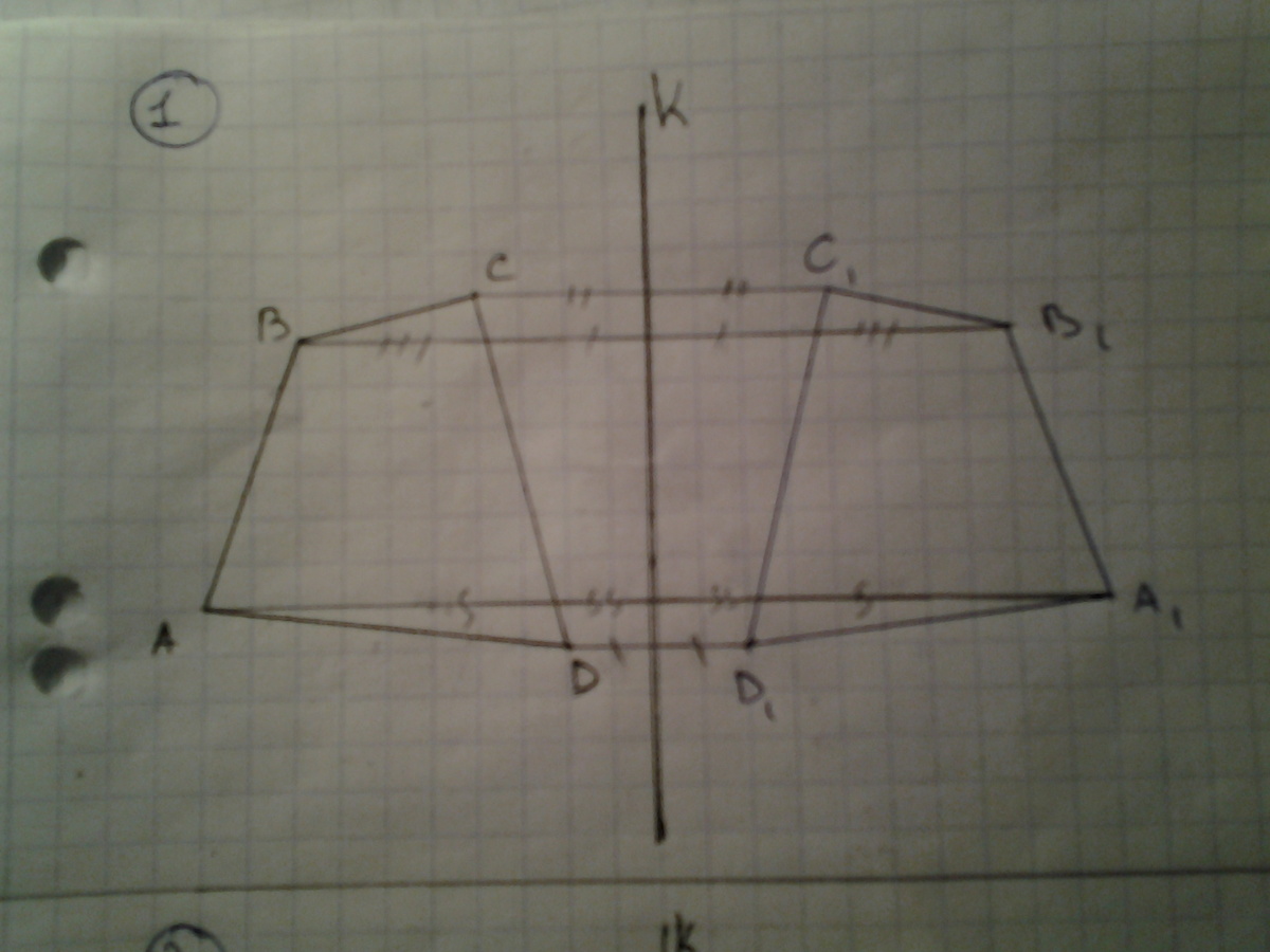 Нужно нарисовать два варианта осевой симметрии четырёхугольника.Первый - с осью за фигурой,второй - с осью пересекающей одну вершину четырёхугольника.Буду очень благодарен ;)