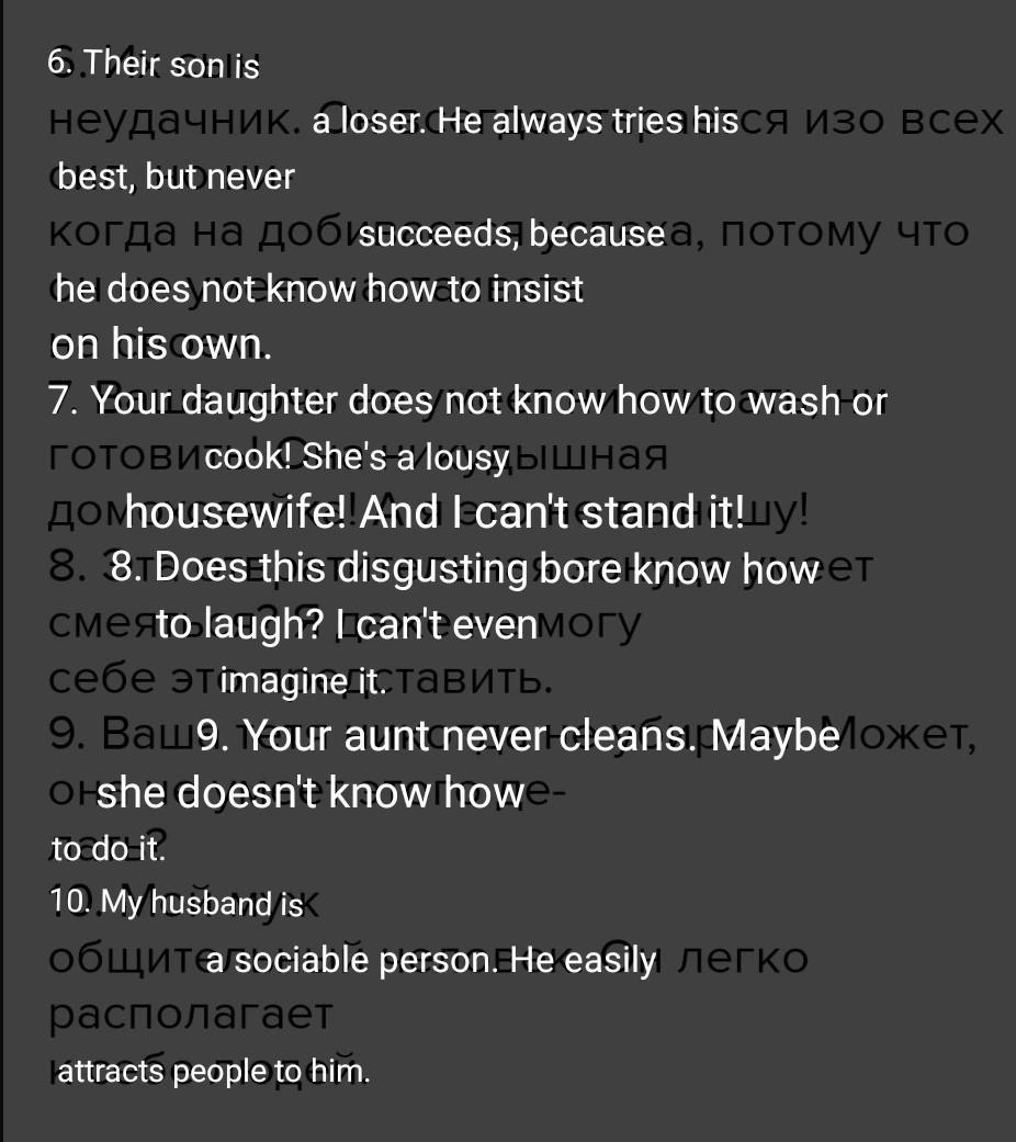 9. Ваша тетя никогда не убирает. Может, она не умеет этого де-