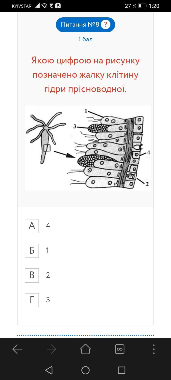 Якою цифрою на рисунку позначено жалку клітину гідри прісноводної.
