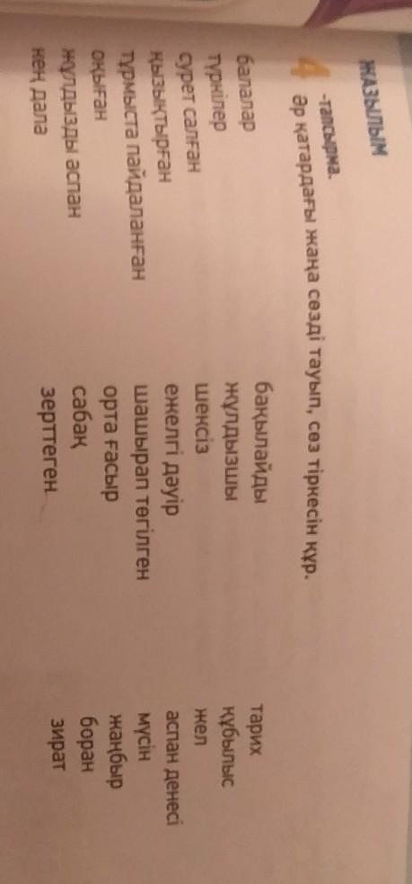Әр қатардағы жаңа сөзді тауып, сөз тіркесін құр.