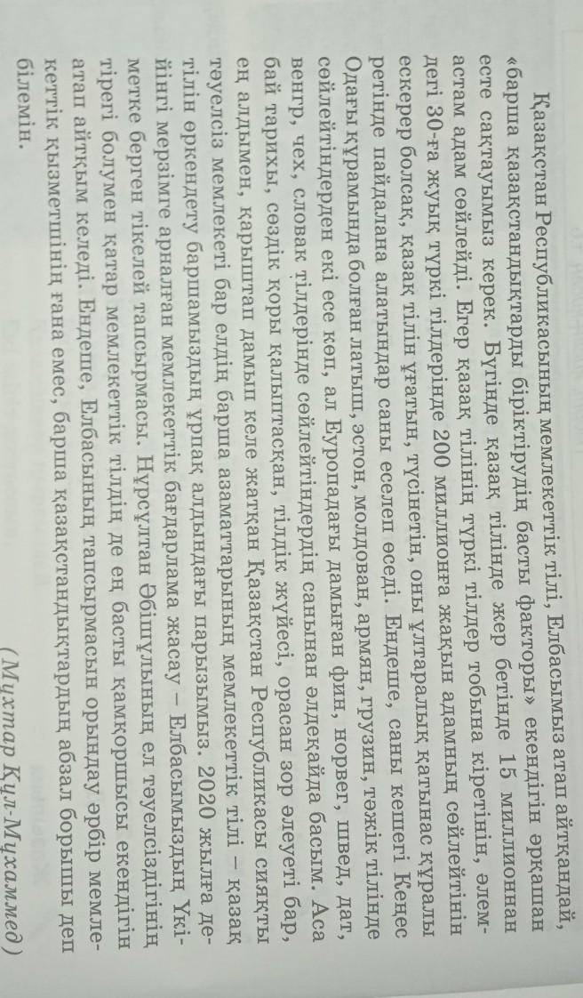 1 - тапсырма . Мәтінді оқып , сұраққа жауап бер . Не үшін қазақ елінде тұратын халықтар қазақ тілін үйрену керек ?