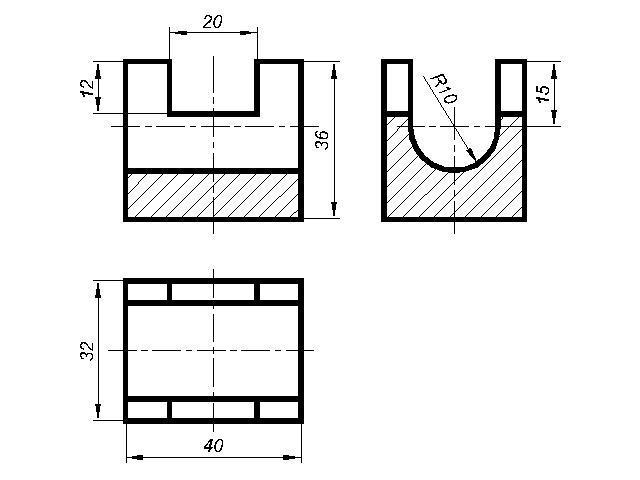 Помогите пожалуйста, нужно построить 3 вида модели вот этой детали? Я так поняла понял,что нужно вид сверху, боковая часть и в разрезе
