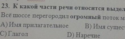 К какой части речи относится выделенное слово все шоссе перегородил огромный поток машин имя прилагательное глагол имя существительное наречие местоимение