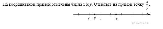 y стоит между 0 и 1 по середине значит у равен 0,5 а x стоит между 1 и 2 значит он равен 2,5 x/y= 2.5*2=5