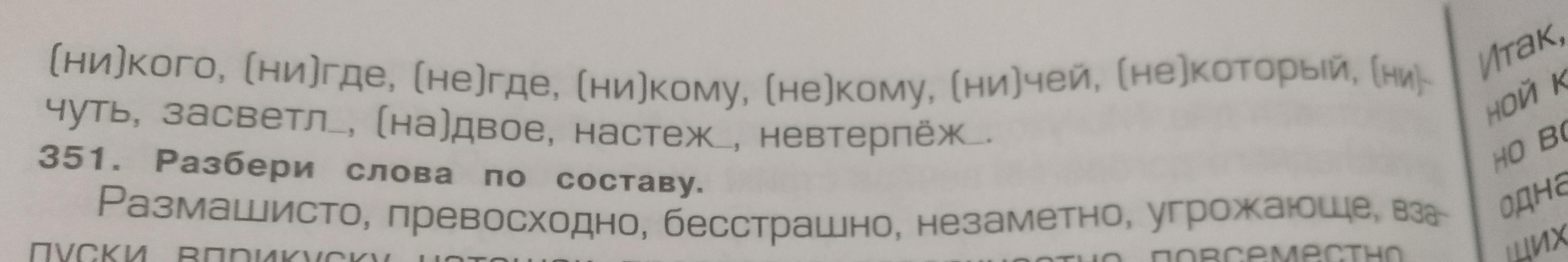 никого, нигде, никому, некому, ничей, некоторый, ничуть, засветло, надвое, настежь, невтерпёж