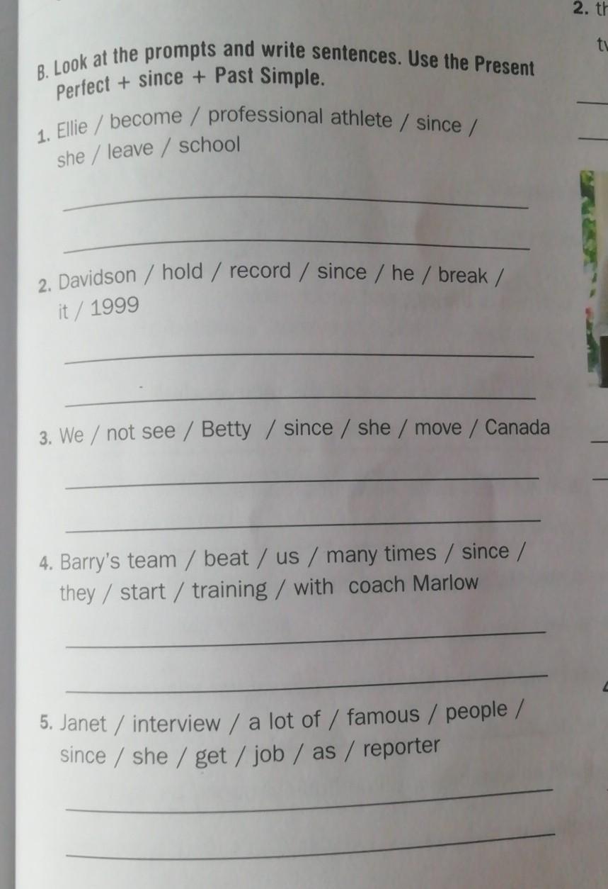 1) Ellie has become a professional athlete since she left school.