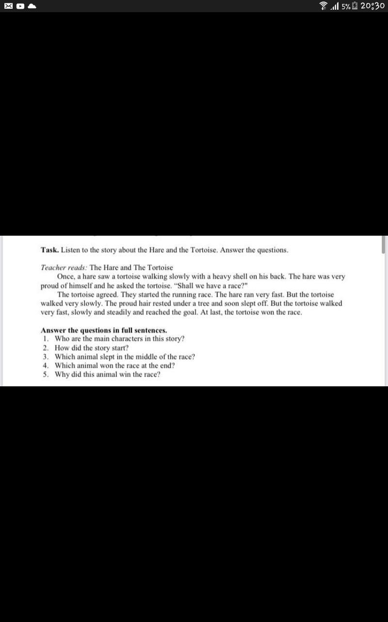 5 The turtle won the race because the hare fell asleep