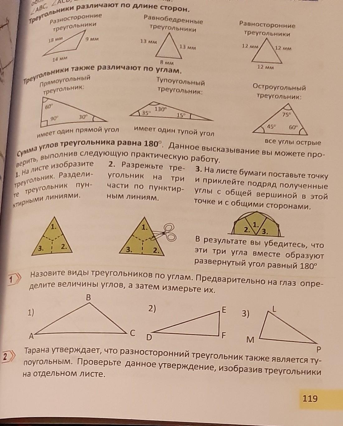 помогите умоляю как это сделать я не знаю!!Задание номер 1 начинается так Назовите виды треугольника пж помогите