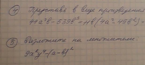 Под цифрой 5 неверно записано условие, переменные разные и там никак не раскладешь на множители