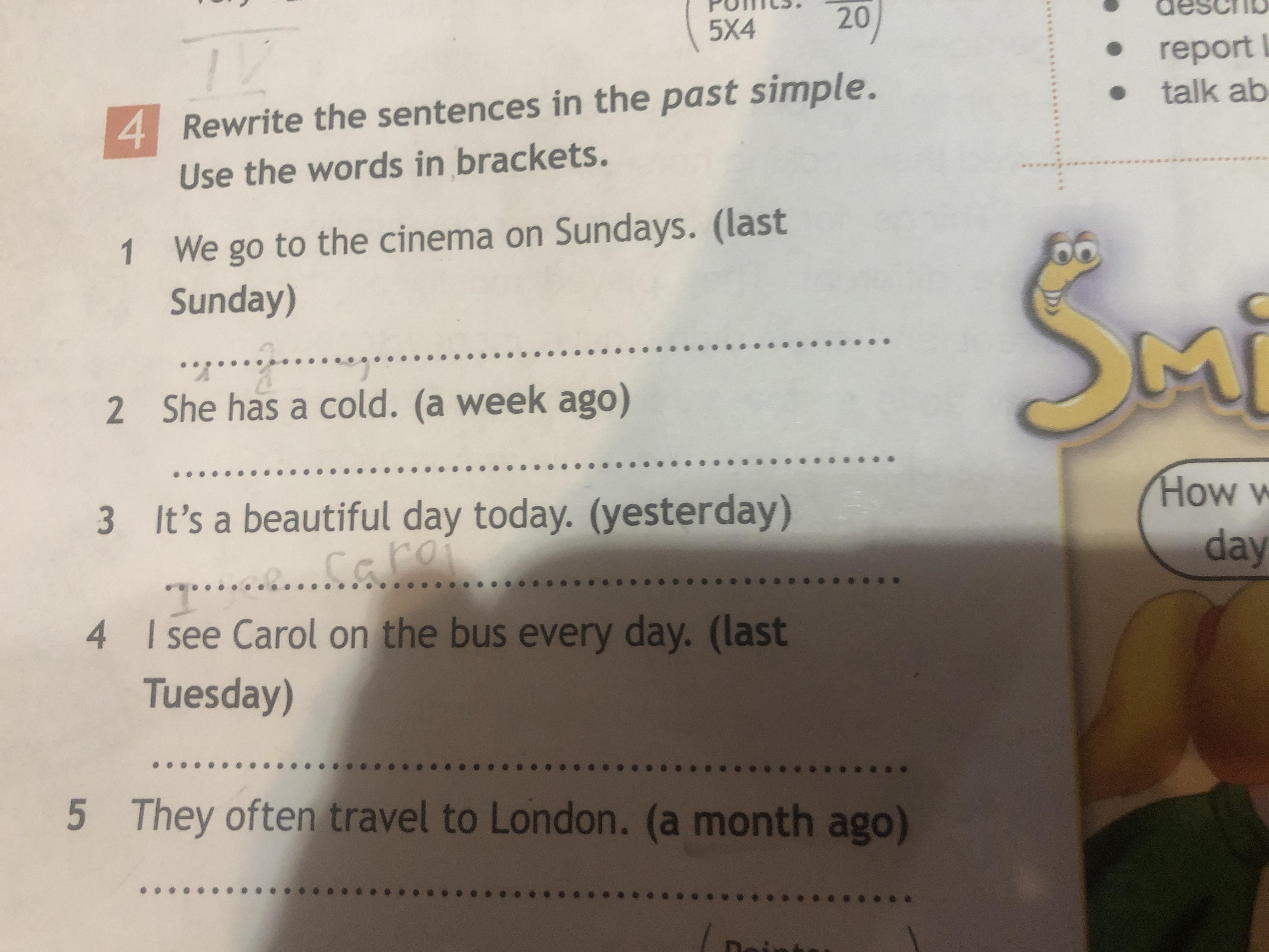 4 - I saw Carol on the bus last Tuesday (see-saw-seen)