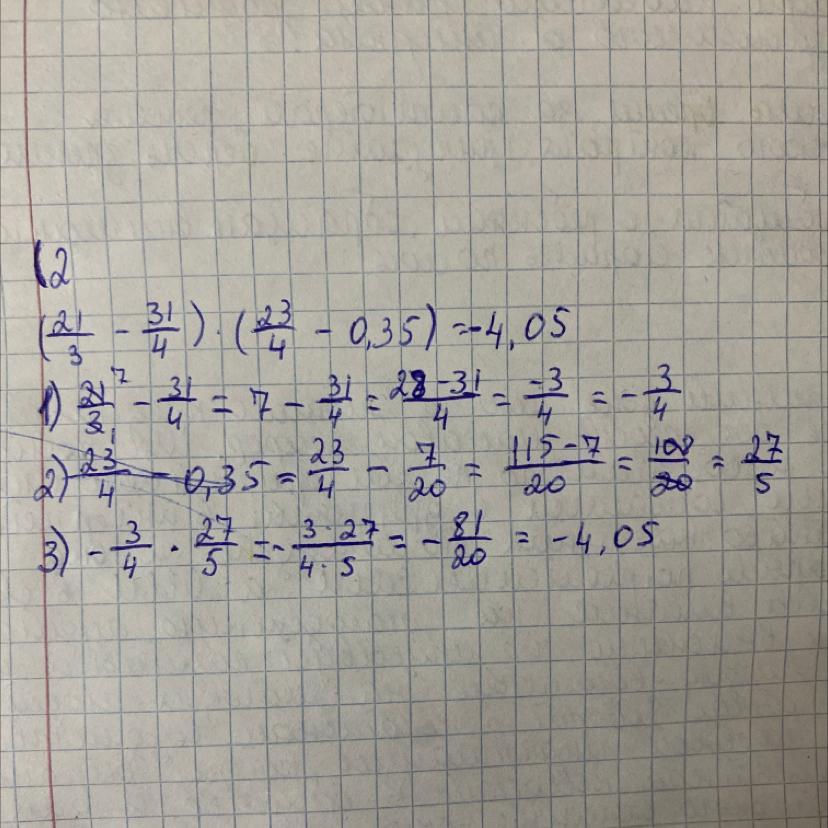 (2 1/3 - 3 1/4) * (2 3/4 - 0,35) пожалуйста пошагово ответ умоляю срочно