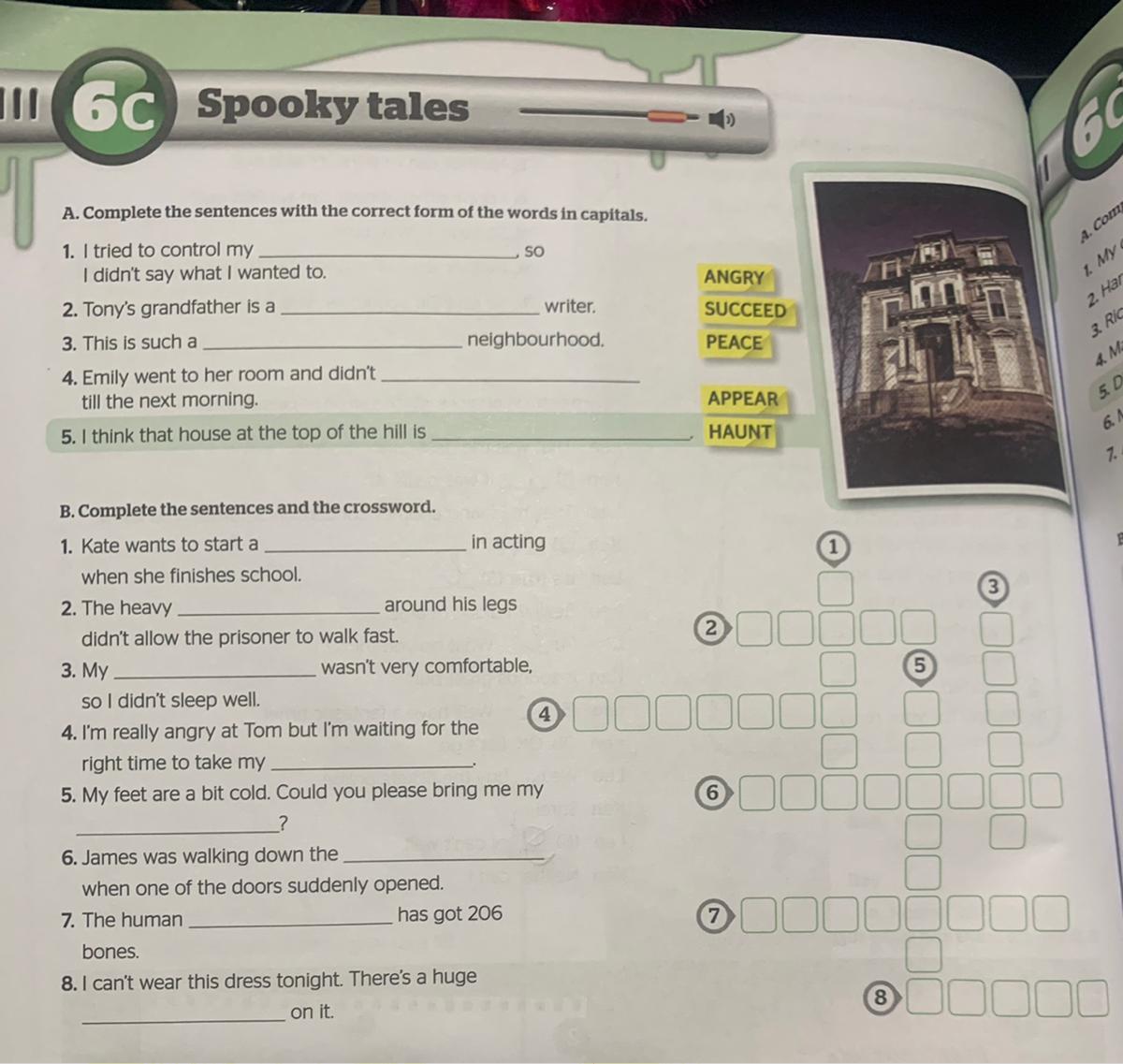 1. anger 2. successful 3. peaceful 4. appear 5. haunted