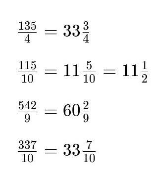деление с Остатком сначала неправильной дробью, затем смешанной дробью: 11/2 22/4 Изобразите 17/3 75/6 135 : 4 15/10 542 : 9 337/10
