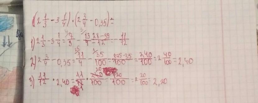 (2 1/3 - 3 1/4) * (2 3/4 - 0,35)