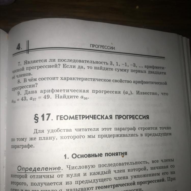 7. Является ли последовательность 3, 1, -1, -3, ... арифмети-