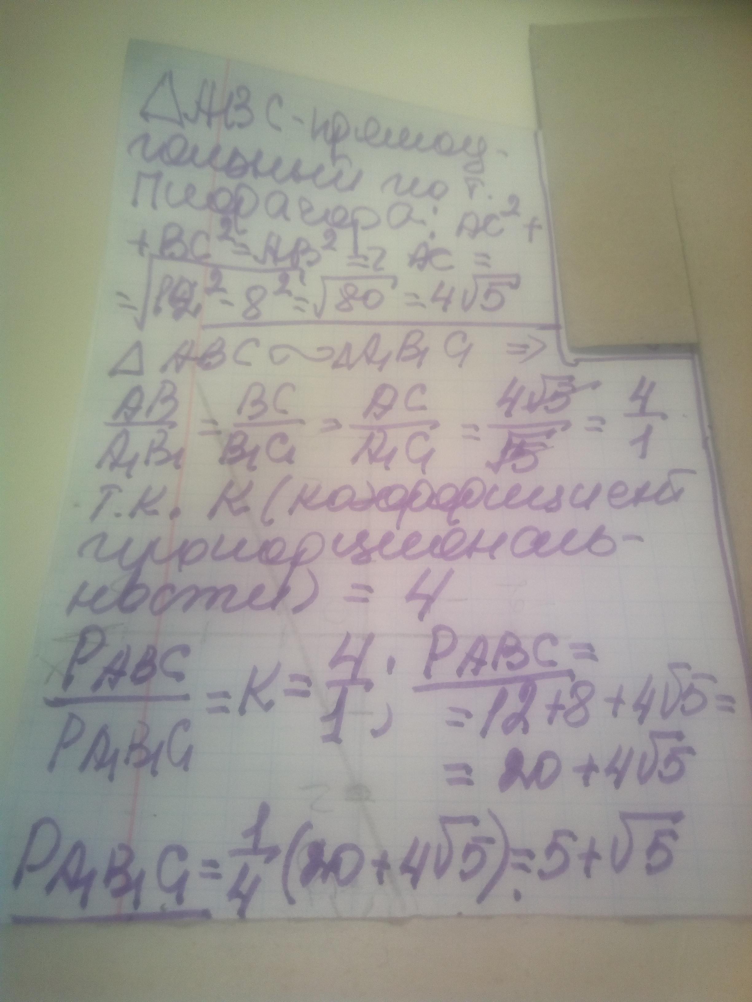 а зная коэффициент подобия можем сказать что Периметр А1В1С1= 4(5+√5)/4= 5+√5