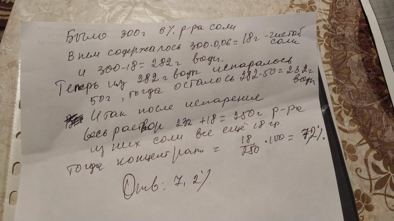Было 300 г шестипроцентная раствора соли. Через некоторое время 50 г воды испарилось. Каким стал содержание соли в растворе? напиши формулы по которым вы находите, почему и как мне сложно это понять!!! пж помогите :с