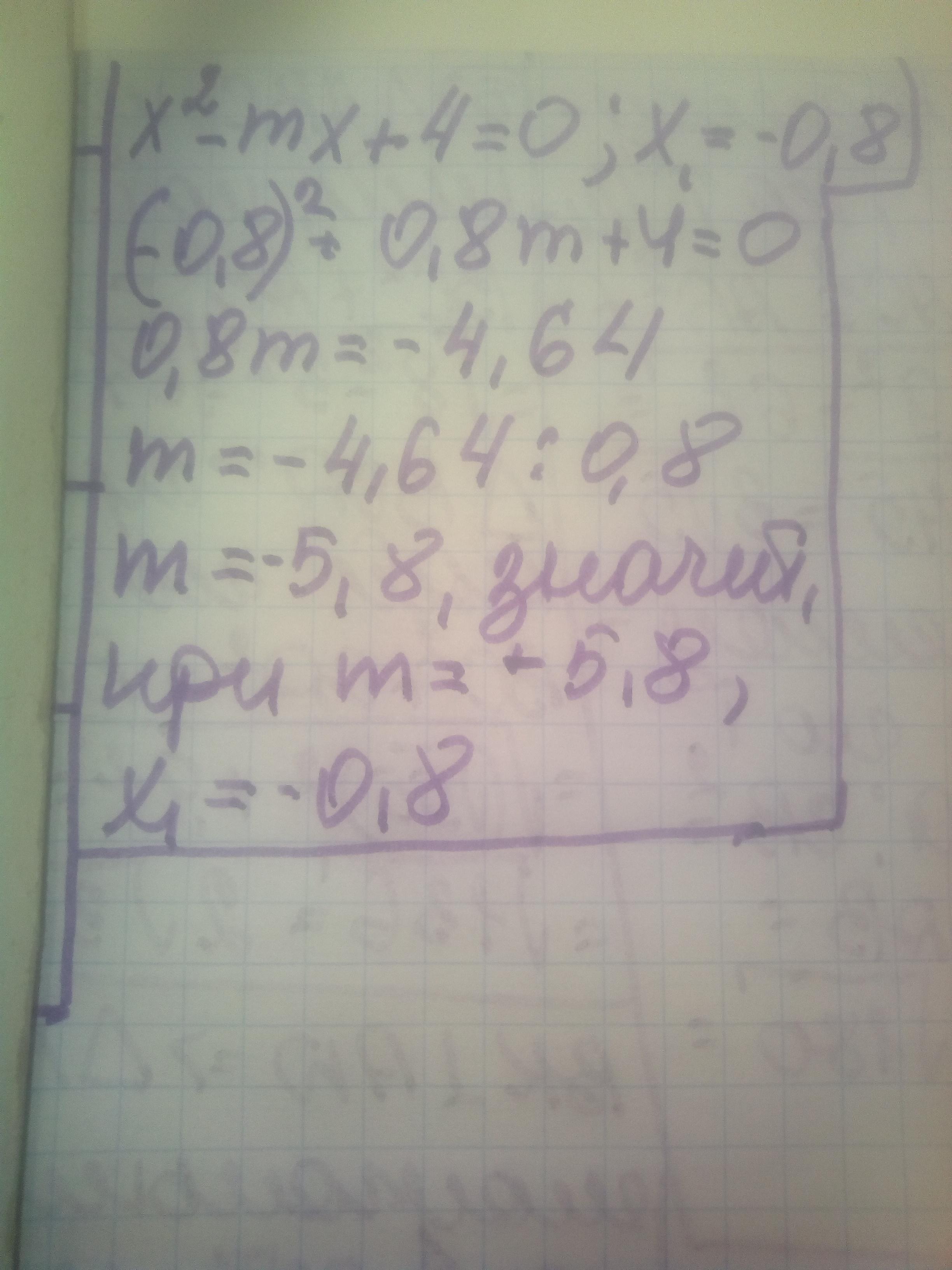 Так как один из корней равен - 0,8, то подставим его значение в уравнение: