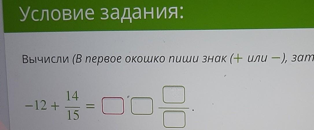Вычисли (В первое окошко пиши знак (+ или —), затем целое и дробь